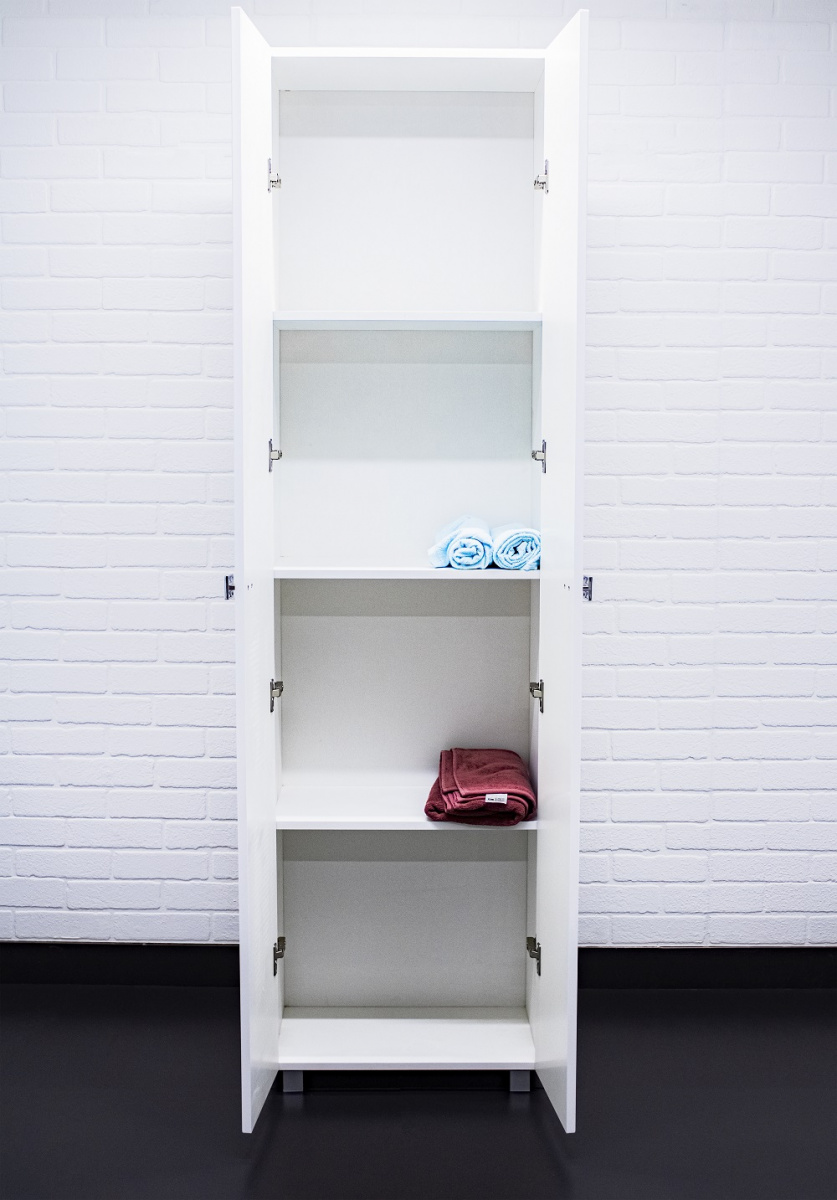 Пенал напольный 55 Мега без ящика АЙСБЕРГ– это практичное решение для хранения ванных принадлежностей. Он идеально подходит для небольших помещений благодаря узкому дизайну. Эта модель изготовлена из ЛДСП и МДФ с использованием пленки ПВХ, что обеспечивает долговечность и устойчивость к влаге. Глянцевое покрытие придаёт поверхности стильный вид и облегчает уход за мебелью.