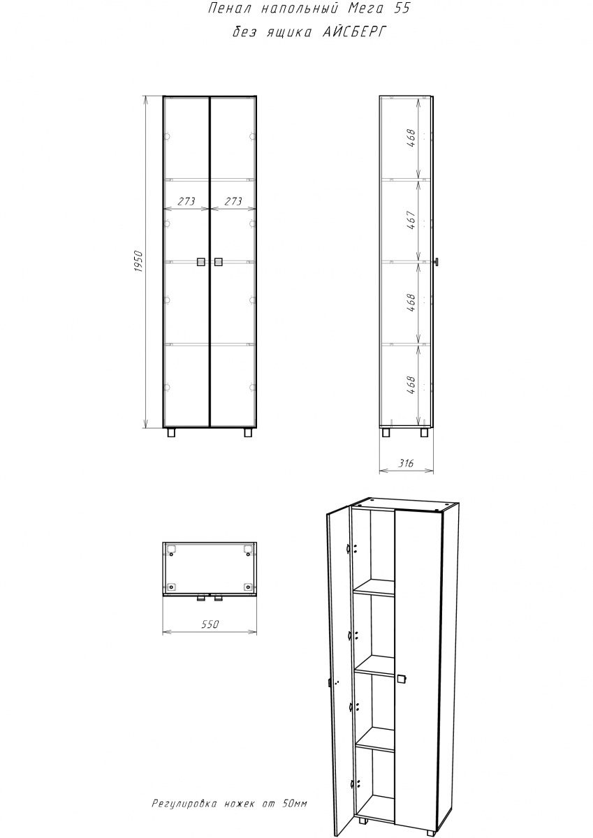 Пенал напольный 55 Мега без ящика Айсберг Домино (DM4607P)