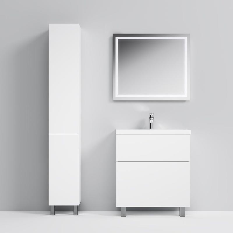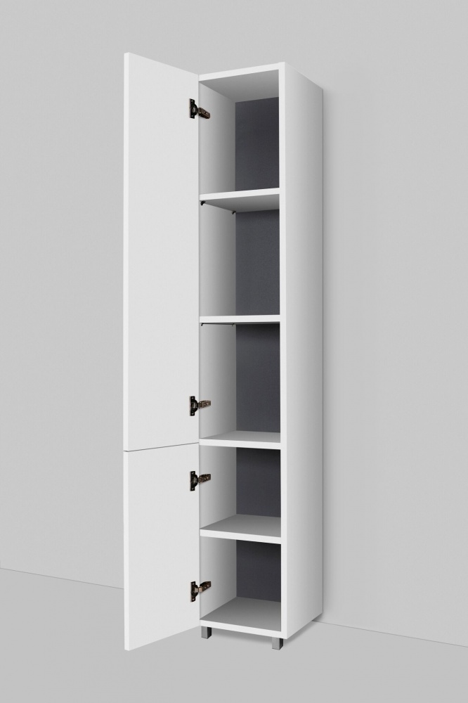 Шкаф пенал AM.PM Gem 30 L M90CSL0306WG белый, с глянцевой поверхностью, с двумя распашными дверцами (петли слева), с двумя хромированными ножками, для длительного срока службы в ванных комнатах с повышенной влажностью.