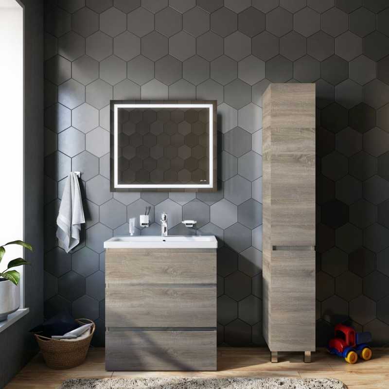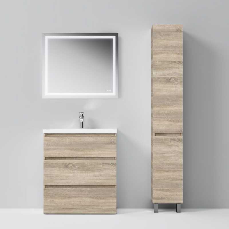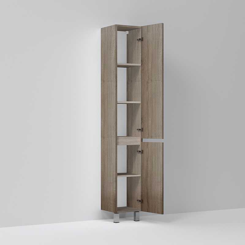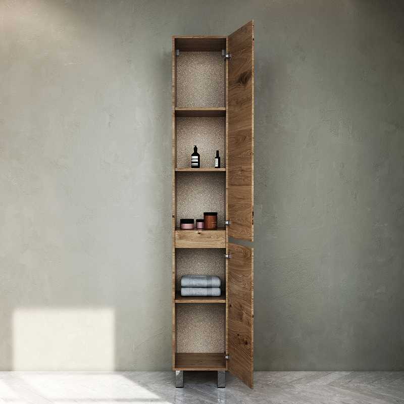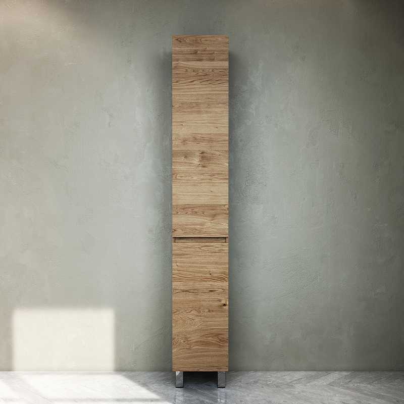 Шкаф пенал AM.PM Gem S 30 R светлый дуб, с двумя распашными дверцами (петли справа), с двумя хромированными ножками, для длительного срока службы в ванных комнатах с повышенной влажностью.