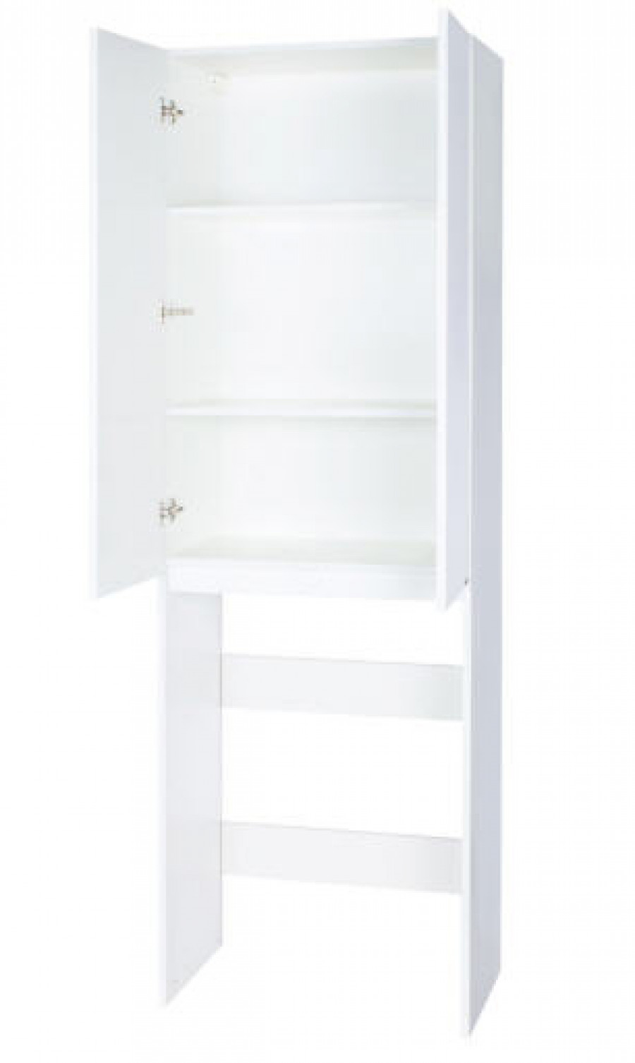 Шкаф напольный для стиральной машины — элегантное решение, позволяющее существенно сэкономить пространство ванной комнаты. Белая мебель классического дизайна легко впишется в любой интерьер. Корпус из МДФ в покраске белый глянец, фасад выполнен из влагостойкой ЛДСП белого цвета. В верхней части конструкции установлены три полки, на которые можно складывать белье, полотенца, туалетные принадлежности. Петли с доводчиком для комфортного и бесшумного использования. Регулируемые навесы выдерживают нагрузку до 70 кг на пару.