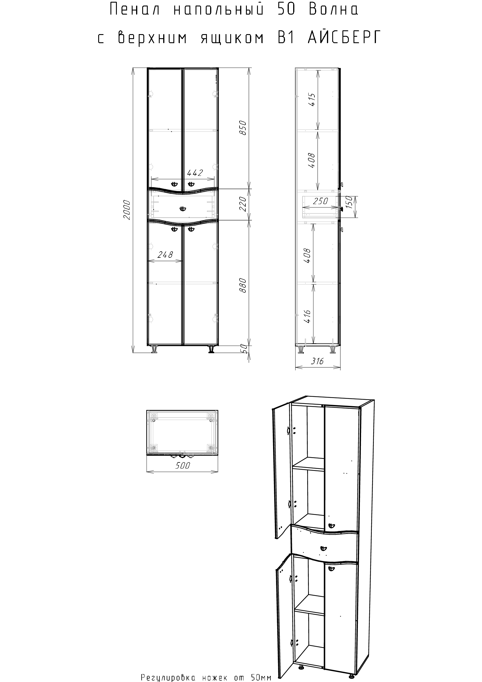 Пенал напольный из корпус из ЛДСП также покрыт влагостойкой эмалью.