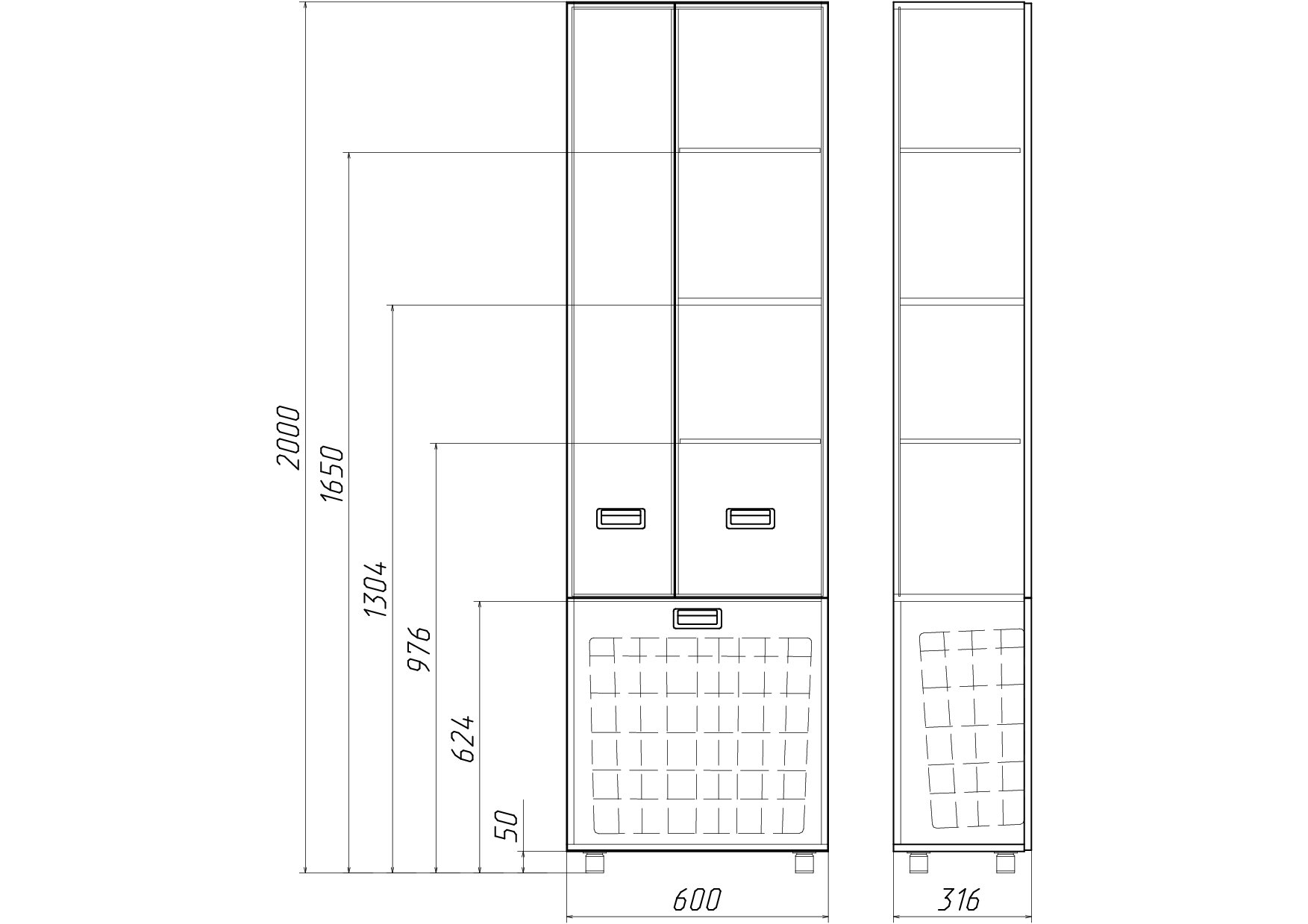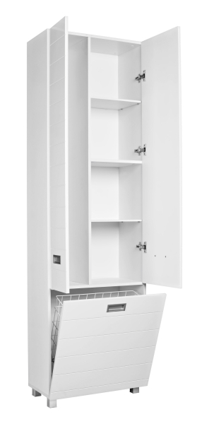 Пенал имеет три полки справа, а слева, бельевая корзина