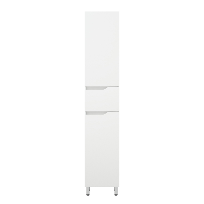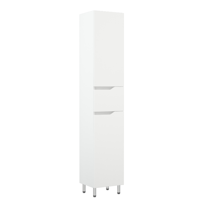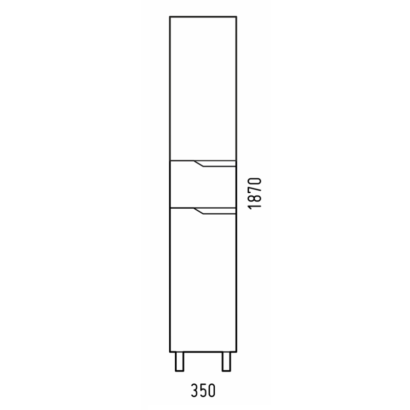 Напольный пенал Лотос 35 торговой марки Melodia della vita с габаритными размерами 350х291х1870 это стильное и эргономичное решение для вашей ванной комнаты. Колонна совместима со всеми тумбами и зеркальными шкафами серии Лотос. У пенала есть две распашные двери: наверху и внизу. За дверьми по две регулируемые по высоте вкладные полки. По центру один выдвижной ящик на шариковых направляющих. У пенала четыре мет. хром опоры. Крепление к стене осуществляется через внутреннюю горизонтальную царгу сверху. Вместо ручки - плавный эргономичный спил. Поставляется в собранном виде в комплекте с крепежом и ножками.