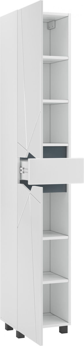 Пенал напольный Vector 35 левый с одним ящиком Домино представляет собой идеальный элемент мебели для ванной. Он сочетается с современным дизайном и функциональностью. Этот шкаф в ванную обладает прочным корпусом из ЛДСП и фасадом из МДФ, покрытым пленкой ПВХ. Гарантия два года подтверждает надежность изделия.