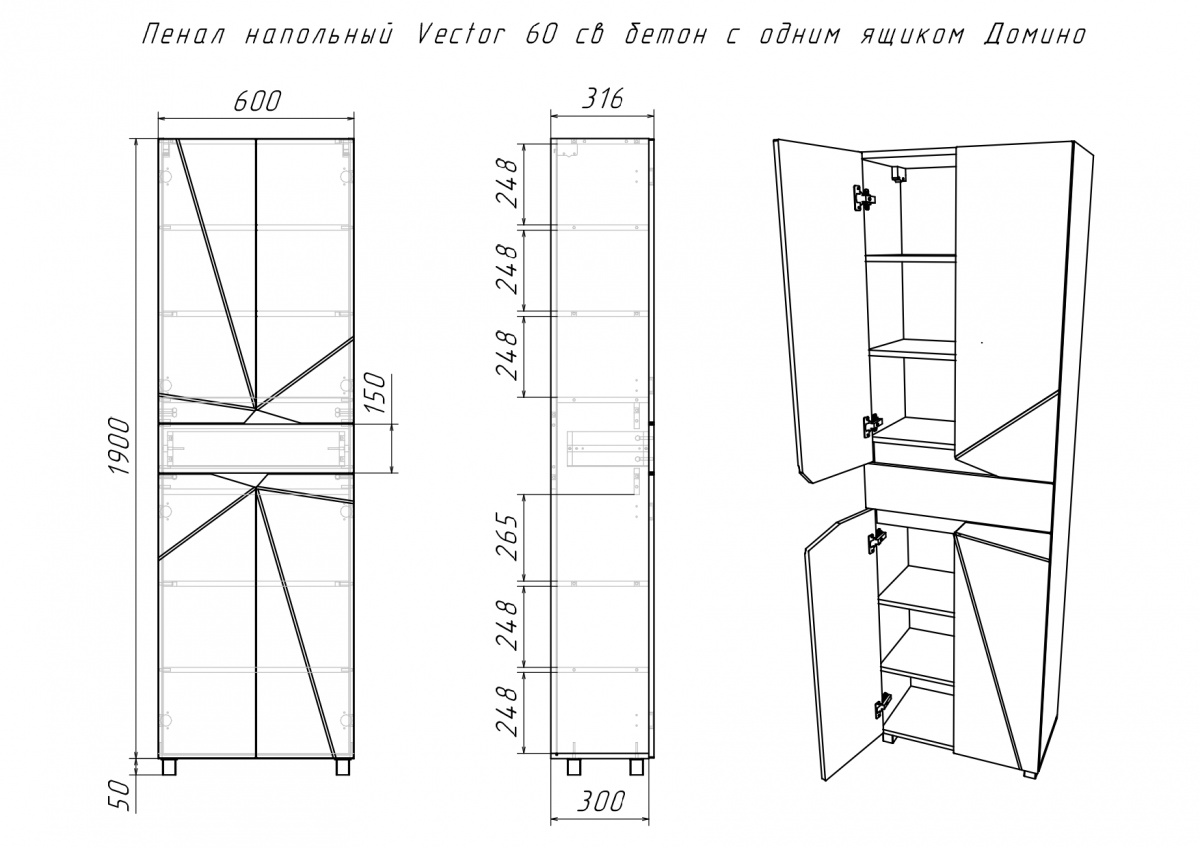 Пенал напольный Vector 60 св. бетон с одним ящиком Домино - стильное и функциональное решение для вашей ванной комнаты. Изготовленный из качественного ЛДСП, этот пенал обеспечит долговечность и надежность в использовании.