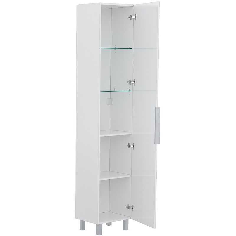 Система хранения: 1 распашная дверца (внутри шкафа две стеклянные полки и две полки из ЛДСП).