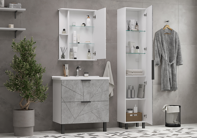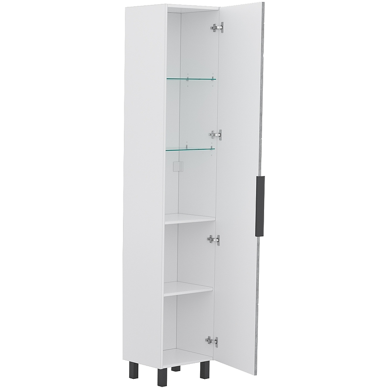 Система хранения: 1 распашная дверца (внутри шкафа две стеклянные полки и две полки из ЛДСП).