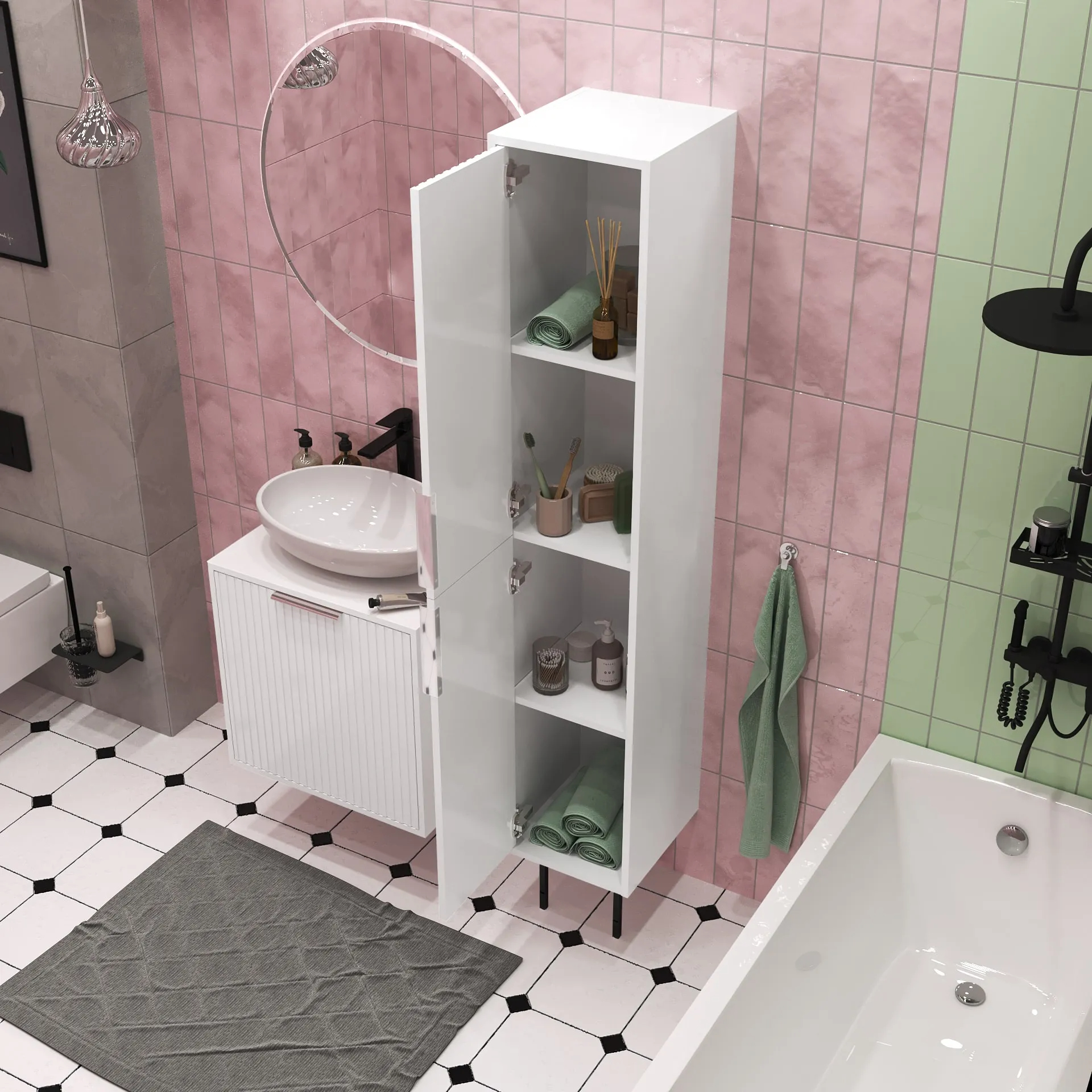 Напольный белый пенал Estel – трендовое решение для интерьера. Фактурный фасад – «рубчик» добавляет текстуру и интересный визуальный акцент в ванную. Пенал создает приятную и комфортную атмосферу в комнате и предоставляет дополнительное пространство для хранения различных принадлежностей.