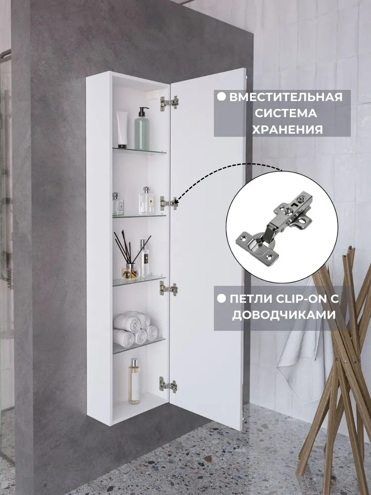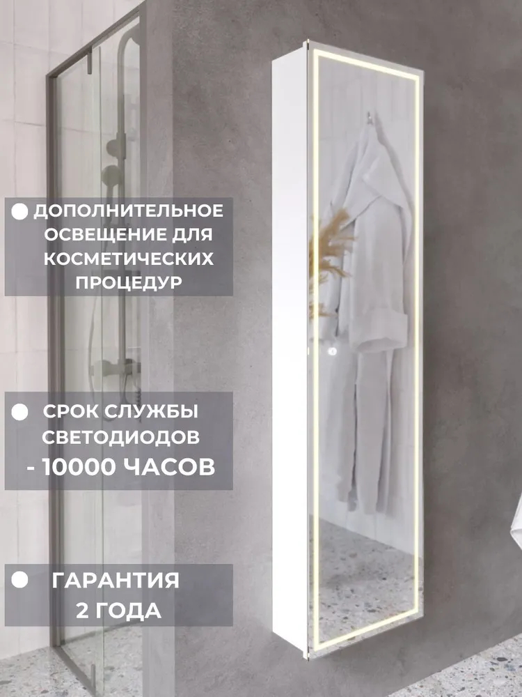Подвесной зеркальный пенал с подсветкой – стильное функциональное решение для интерьера. Pillar гармонично впишется в современный дизайн. Зеркальная поверхность визуально расширяет пространство, делая даже небольшую ванную комнату более просторной и светлой. Светодиодная подсветка обеспечит комфортное освещение для косметических процедур и создаст безмятежную атмосферу для отдыха.