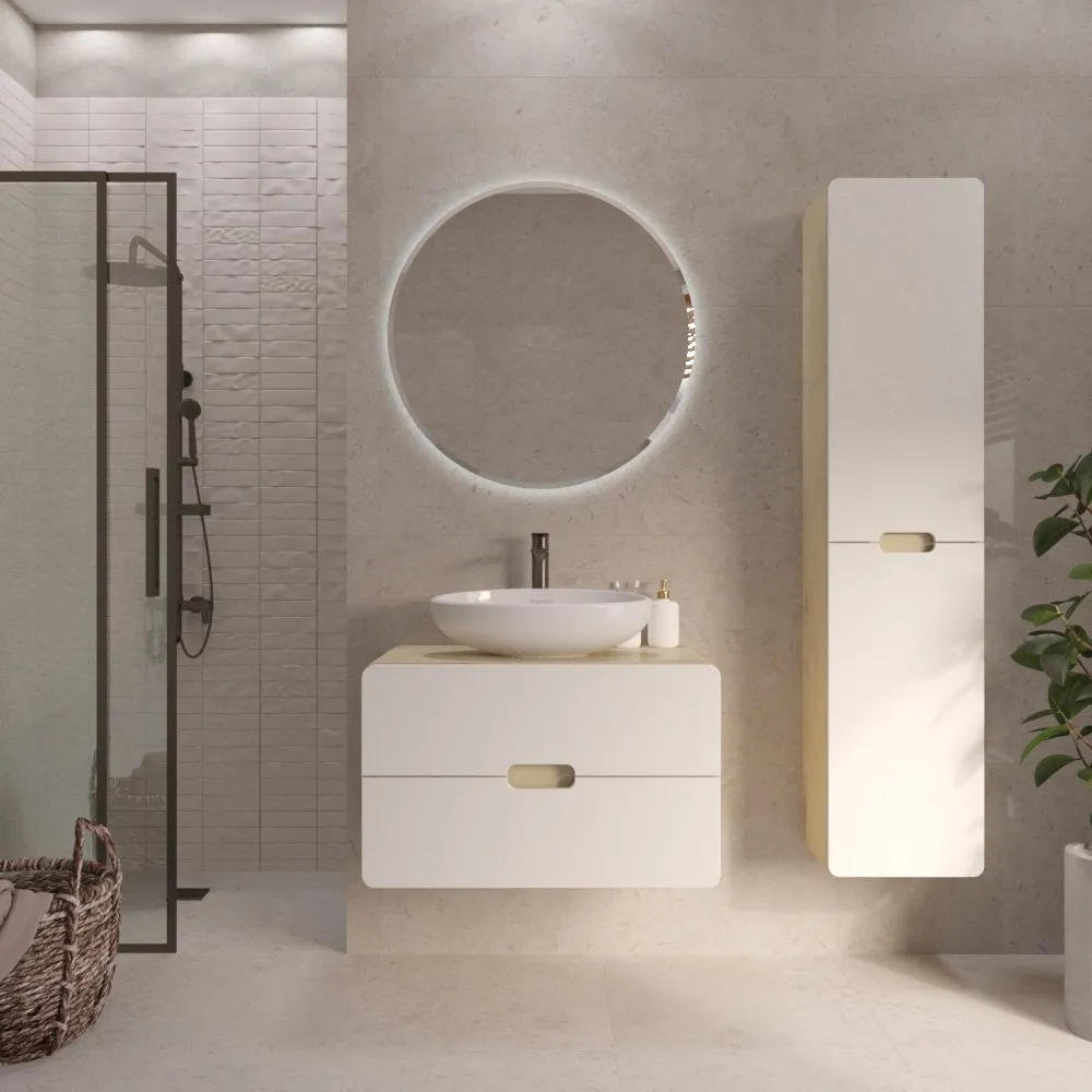 Подвесной пенал Vortex – современное минималистичное решение для хранения в ванной. Плавные скругленные края, белый фасад с древесным корпусом символизируют гармонию, создают ощущение легкости и безопасности. Это особенно актуально в ванной комнате, где важно чувствовать себя комфортно и расслабленно.