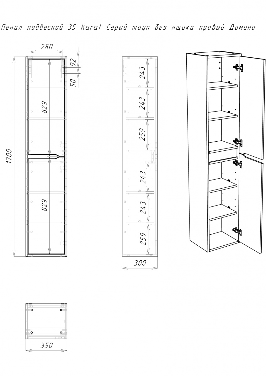 Пенал подвесной 35 Karat Серый тауп без ящика правый Домино (DK3214P)
