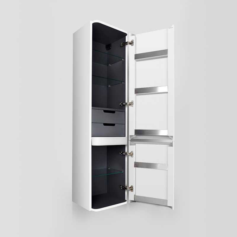 Подвесной шкаф пенал в ванную AM.PM Sensation 40 M30CHR0406WG с двумя распашными дверцами и двумя ящиками с органайзерами.