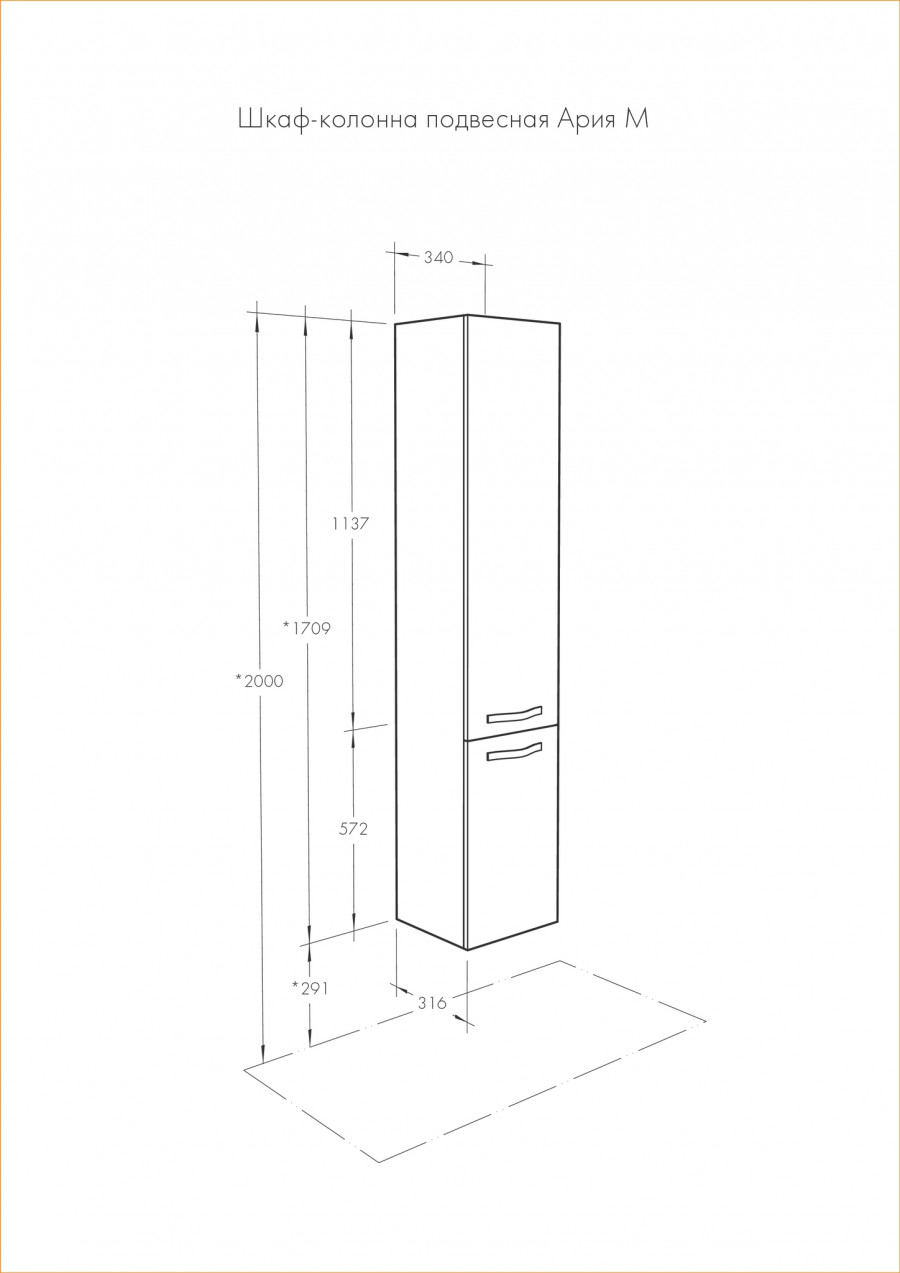 Пенал подвесной Aquaton Ария М 340x316x1709 чёрный глянец (1.A124.4.03A.A95.0)