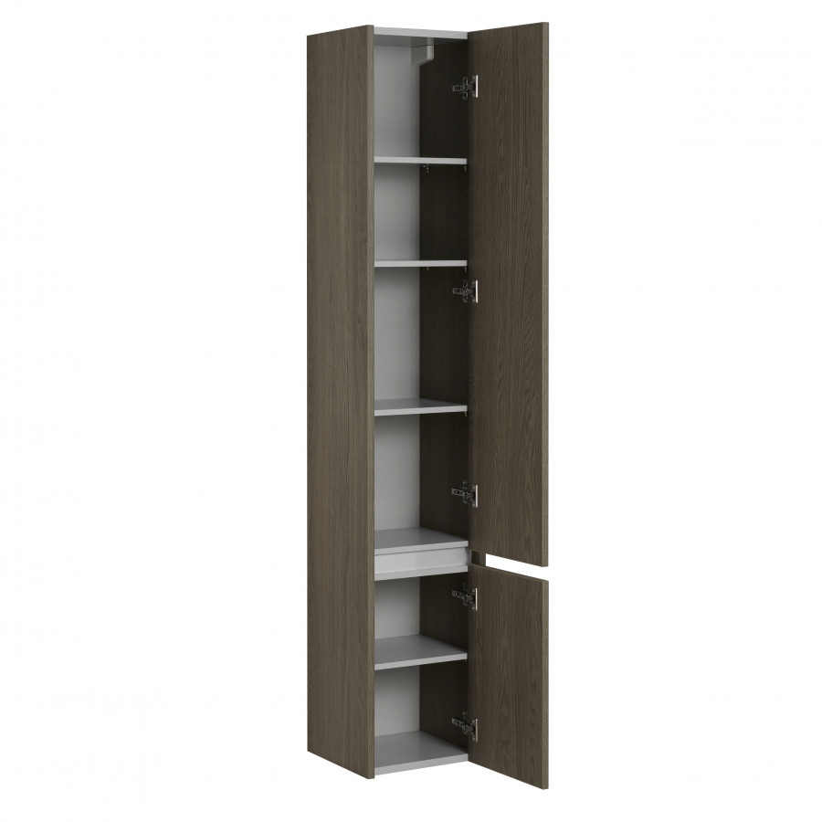 Подвесной шкаф-колонна Стоун выполнен в современном лаконичном стиле и, благодаря отсутствию лицевой фурнитуры, хорошо впишется в различные интерьеры. Произведен из высококачественной влагостойкой ЛДСП в цвете грецкий орех. Модель используется как в левом, так и в правом исполнении благодаря опции перевешивания фасадов. Петли с механизмом плавного довода обеспечивают мягкое и бесшумное закрывание дверки