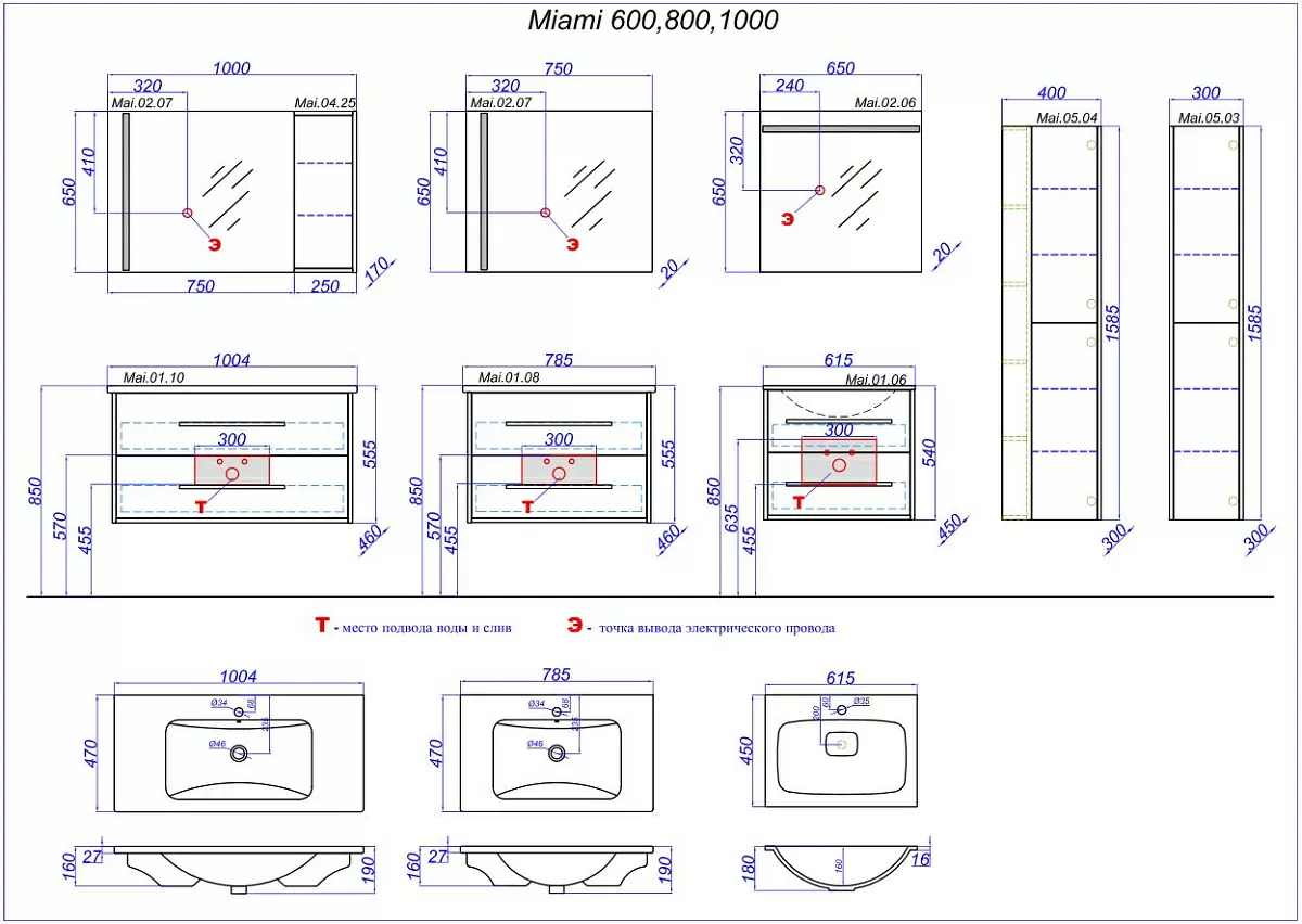 Пенал подвесной Aqwella Miami 400x300x1585 дуб сонома (Mai.05.04)