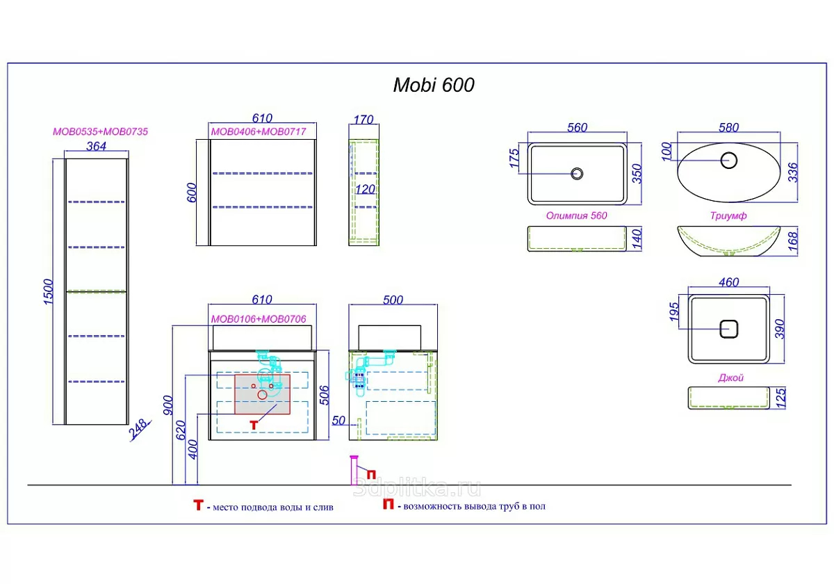 Пенал подвесной Aqwella Mobi 364x248x1500 бетон светлый (MOB0535BS23)