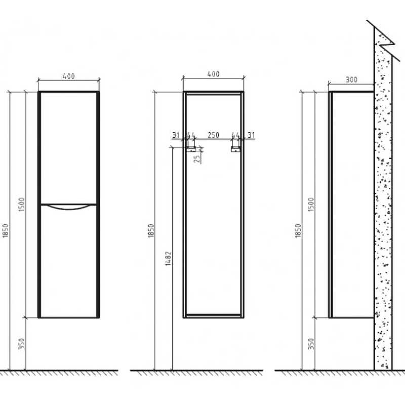 Шкаф-пенал BelBagno ANCONA-N 40 ANCONA-N-1500-2A-SC-BL-R подвесной, с двумя распашными дверцами.