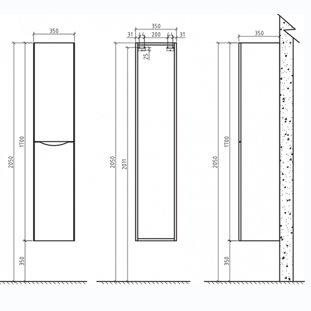 Шкаф-пенал BelBagno ANCONA-N 40 ANCONA-N-1700-2A-SC-BL-L подвесной, с двумя распашными дверцами.