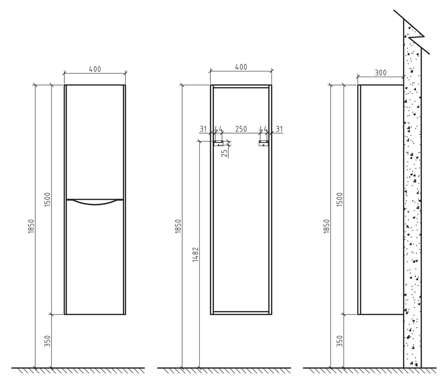 Шкаф-пенал BelBagno ANCONA-N 40 ANCONA-N-1500-2A-SC-TL-R подвесной, с двумя распашными дверцами.