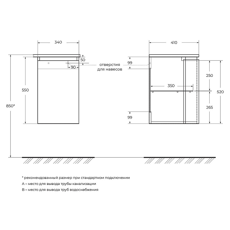 VAGUE Шкафчик подвесной с одной распашной створкой, левый 54907 Grigio talpa opaco, 34x41x55