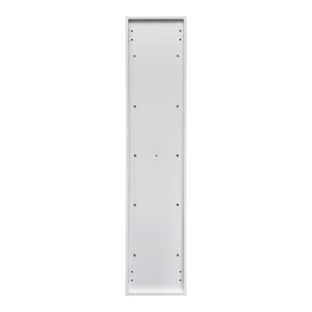 Подвесная шкаф-колонна отличное решение для хранения разных предметов необходимых в ванной комнате. Фасад створок декорированы горизонтальной линейной фрезеровкой. Боковые стенки и фасады пенала облицованы белой матовой пленкой с эффектом SoftTouch. Оригинальные эргономичные ручки цвета хром. За верхней дверцей и нижней створками по две регулируемые полки. Петли оборудованы механизмами плавного закрывания.