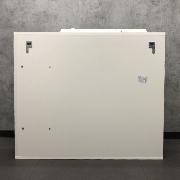 Створка оснащена петлями с плавным закрыванием. Высококачественное зеркальное полотно с амальгамой на основе серебра. Полки и створка покрыты белой матовой эмалью. Оснащается двумя точечными светильниками.