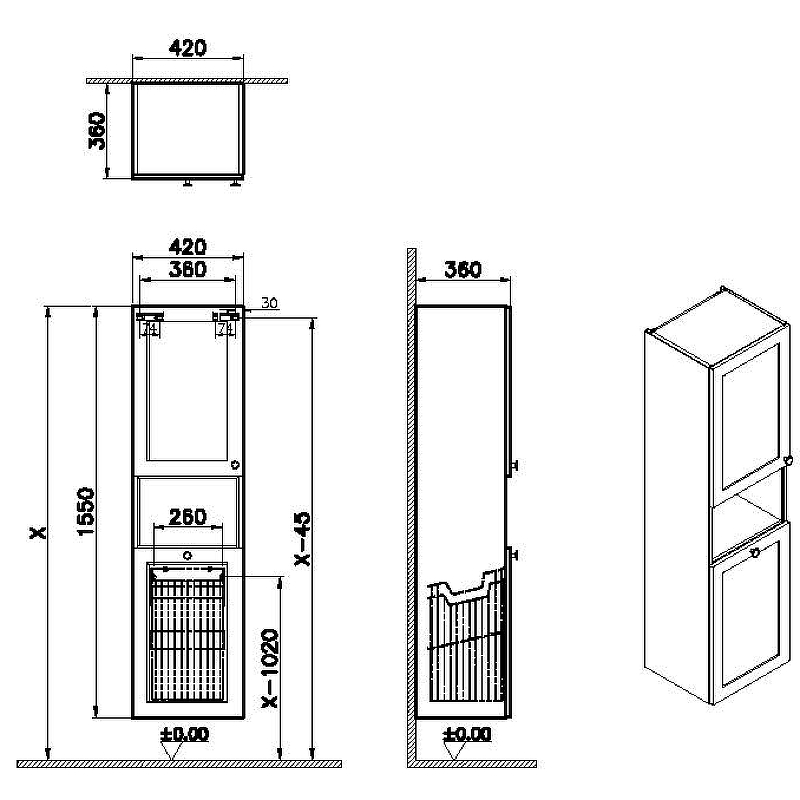 Пенал подвесной Vitra Root Classic 40 см с корзиной, матовый белый, левосторонний (68517)