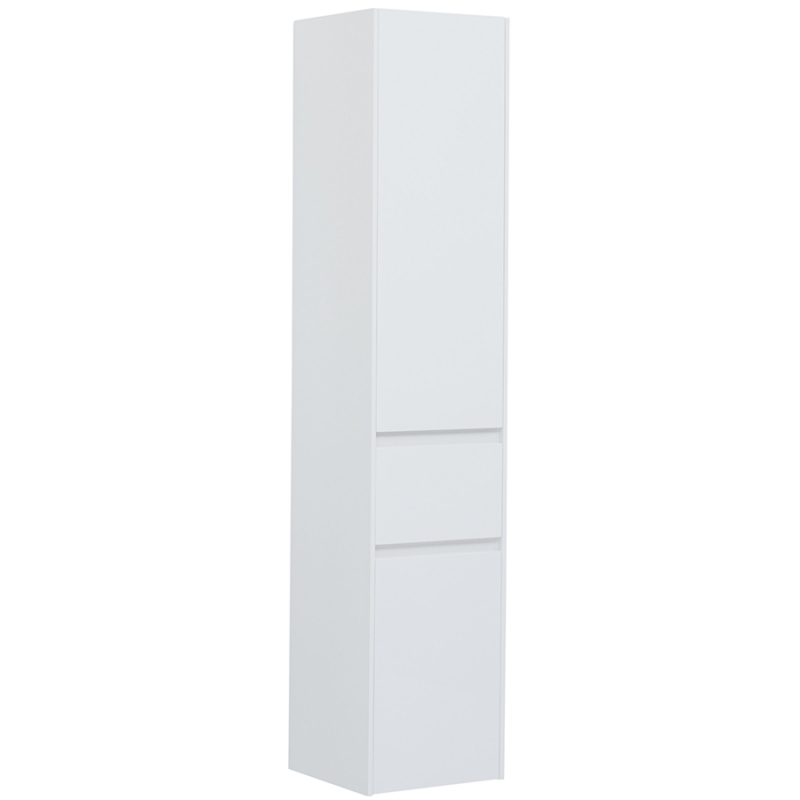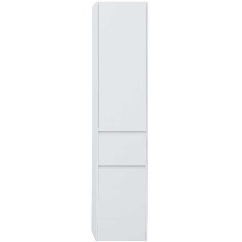 Шкаф-пенал для ванной Aquanet Бруклин 35 белого цвета для подвесной установки Изделие отвечает тенденциям минимализма Аскетизм четких линий и обтекаемых форм в ней доведен до совершенства В модели нет никаких выделяющихся деталей, и даже ручки интегрированные, когда открывание происходит за счет выступающей детали верхней или нижней части фасада, которая срезана под углом, в результате чего образуется выемка, служащая ручкой В пенале две зоны хранения разделены выдвижным ящиком, где удобно хранить мелкие предметы В верхней зоне хранения три полки, в нижней – две Корпус изделия выполнен из выкрашенного белой краской влагостойкого ЛДСП, фасады – из МДФ На контрасте с белизной внешних деталей стильно смотрится корпус выдвижного ящика, выполненный в цвете «дуб сонома»