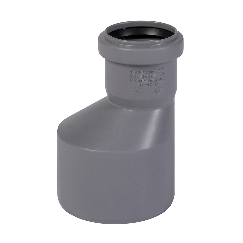 Долговечная маркировка с обозначением производителя, условного диаметра, стандарта (DIN EN 1451-1), даты изготовления (на фитингах дополнительно указываются углы наклона), на трубах нанесена сантиметровая линейка.
