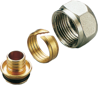 Адаптер для труб Pex на соединения 3/4"x18 Евроконус (Комплект из никелированной гайки, кольца и вкладыша)