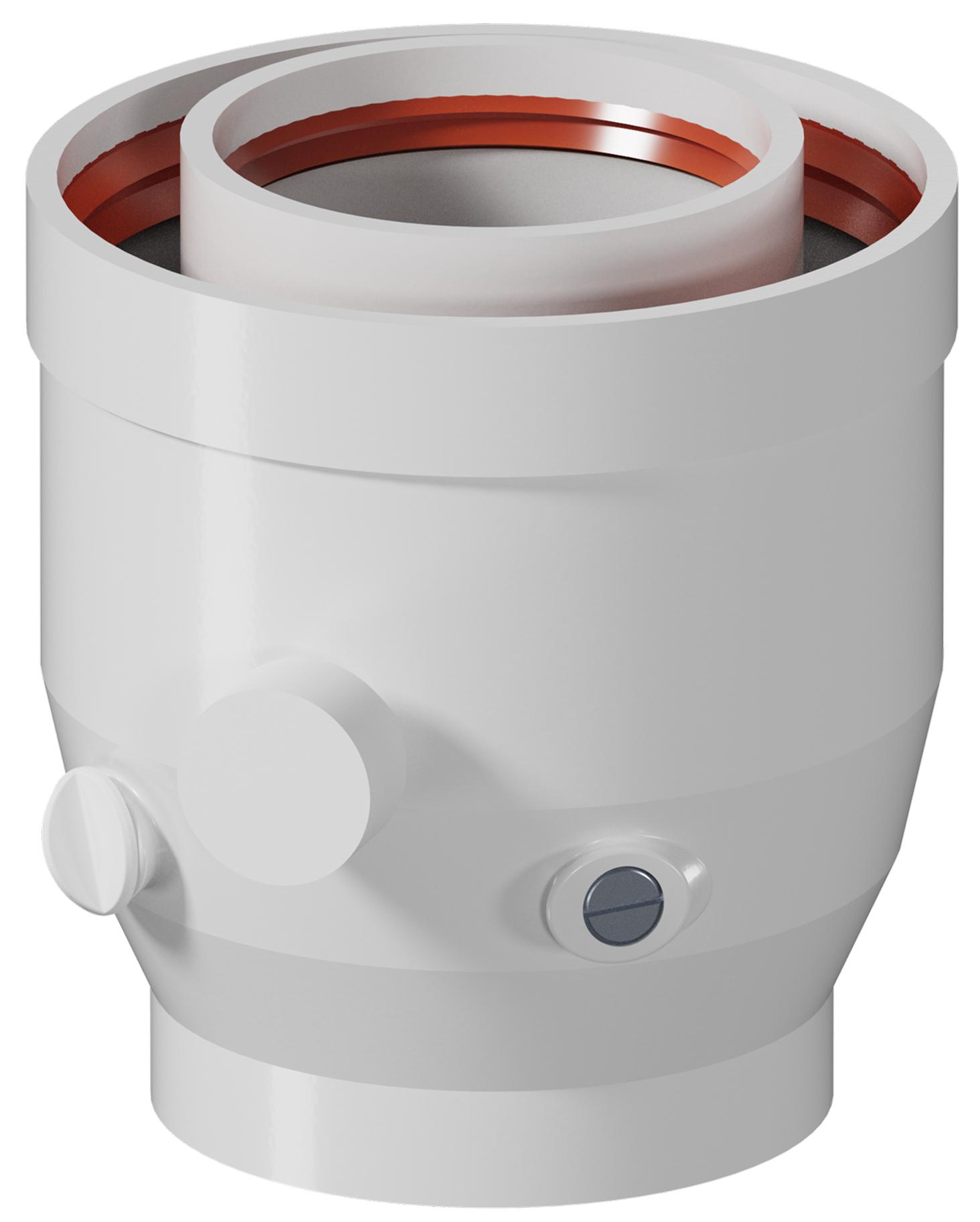 Переход Okseler с конденсатоотводом и инспекцией с D60/100 на 80/125 (oks00116)
