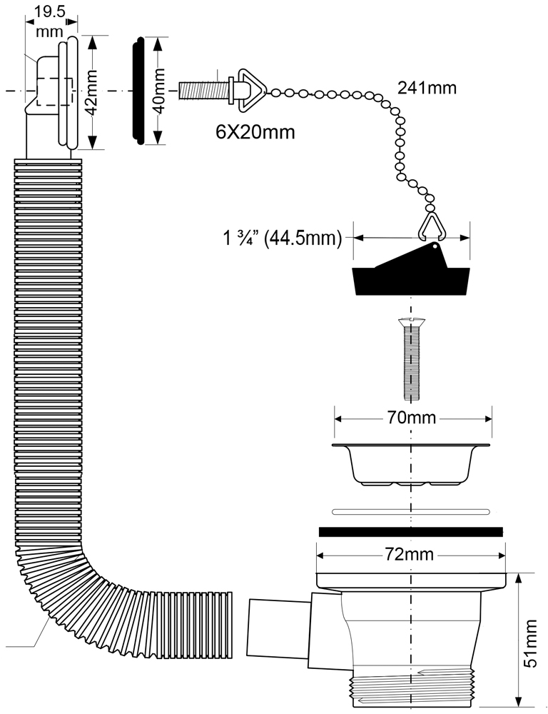 Перелив для мойки McAlpine 11/2"*70 (под прямоугольный перелив) (OR2-70)