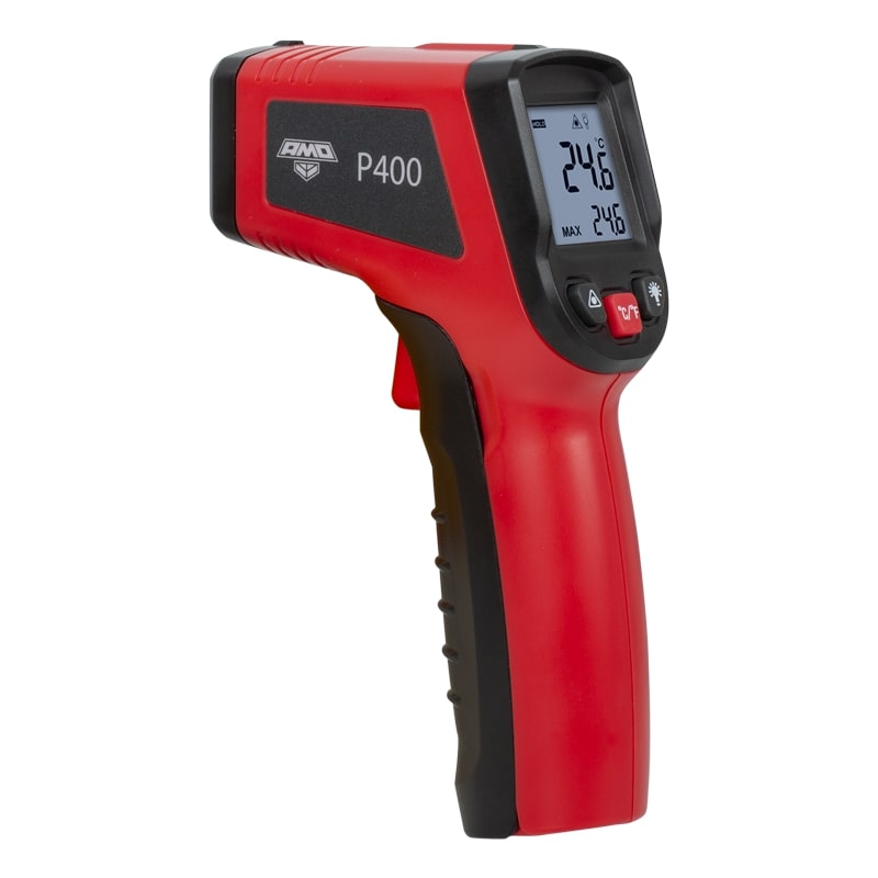 Инфракрасный пирометр AMO P400 применяется для быстрого бесконтактного измерения температуры поверхности. С помощью этого прибора можно проводить температурный контроль там, где непосредственный контакт с объектом затруднен или опасен для здоровья. Эта модель определяет значения в диапазоне от -50°C до +400°C с высокой точностью от ± 2°C и подходит как для бытового, так и для профессионального применения.