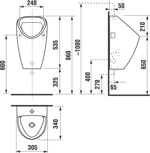 Писсуар подвесной Jika Golem 535х305х340 наружный подвод воды (8430610000001)