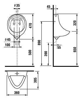 Писсуар подвесной Jika Korint 470х360х305 с сифоном (8441000004401)