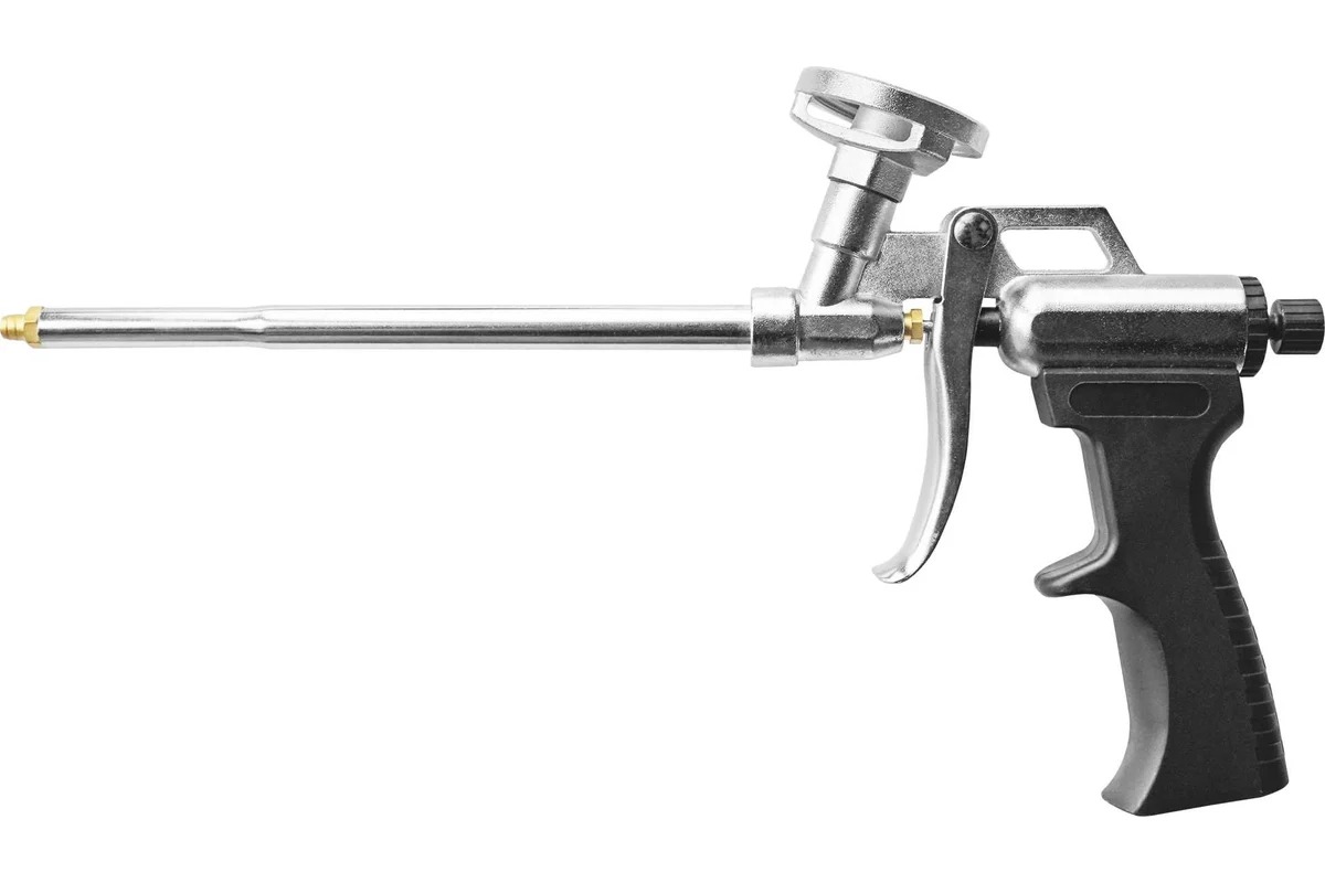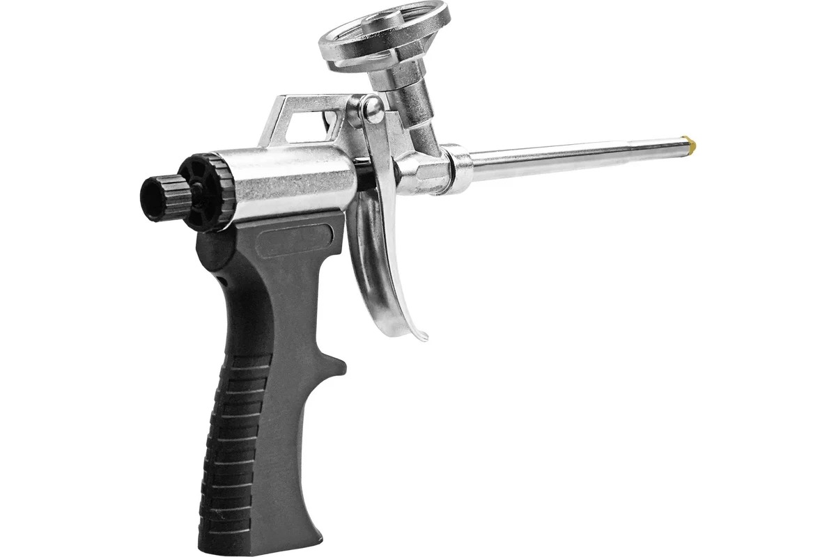 Пистолет для монтажной пены Fomeron Hit обладает прочным металлическим корпусом. Регулятор напора пены расположен с тыльной стороны корпуса пистолета, что позволяет легко и точно регулировать количество выпускаемого содержимого.