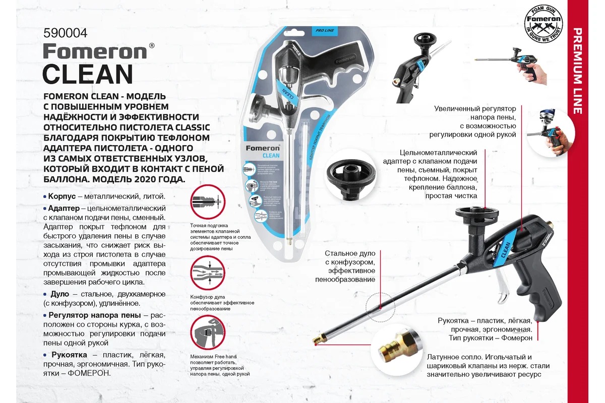 Пистолет для монтажной пены усиленный Fomeron Clean (тефлоновое покрытие иглы и кольца-адаптера) (590004)