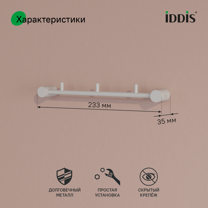 Планка на 3 крючка нержавеющая сталь Petite белый матовый Iddis (PETWTS3i41)