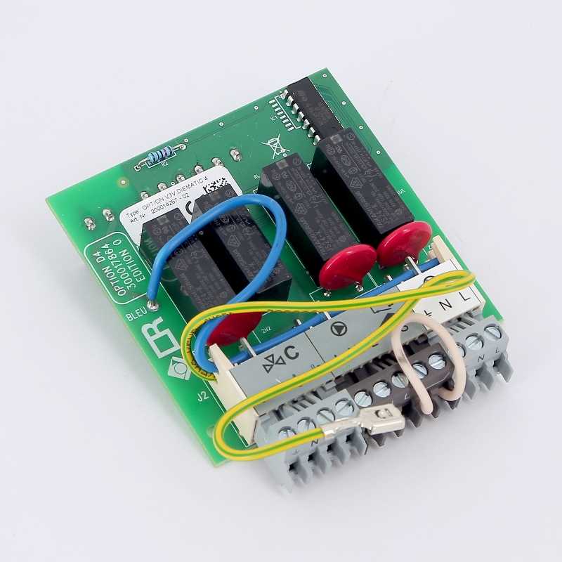 Электронная плата контура с 3-ходовым смесителем позволяет управлять смесительным клапаном с электромеханическим двигателем с двумя направлениями вращения или электротермическим двигателем, циркуляционным насосом данного контура и вспомогательным контуром.