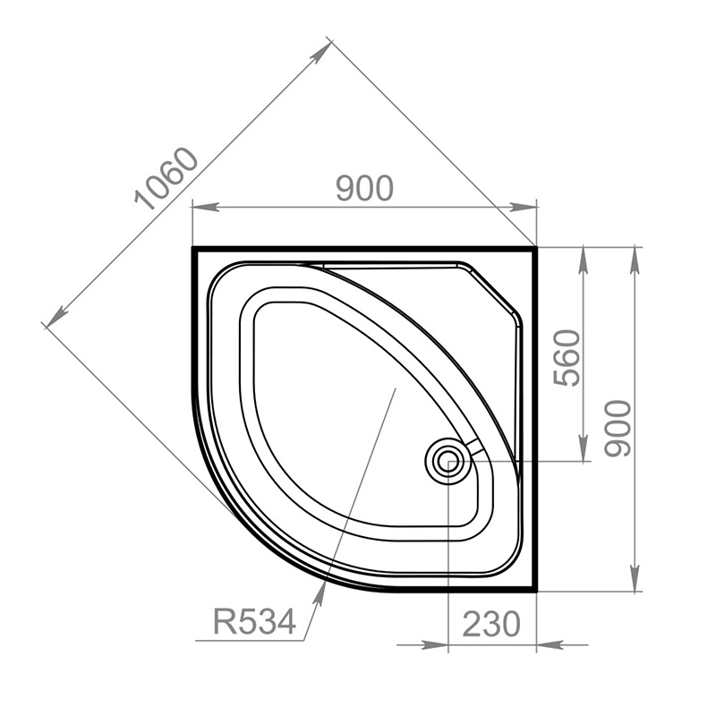 Поддон акриловый Melodia Segment 90х90х44 высокий, полукруг, белый, слив 50 мм (MTYST9090H)