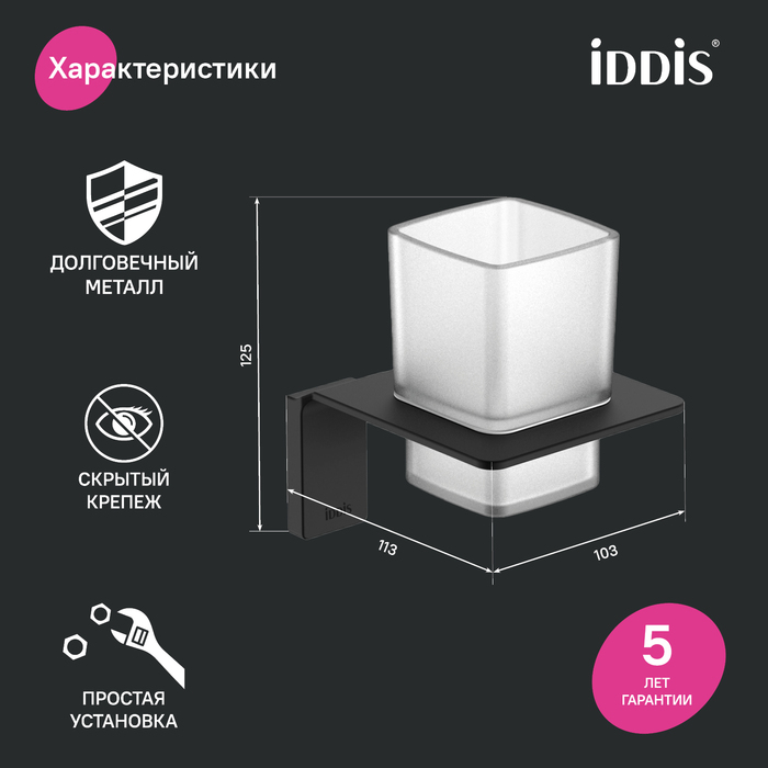 Подстаканник одинарный матовое стекло сплав металлов Slide Iddis (SLIBSG1i45)