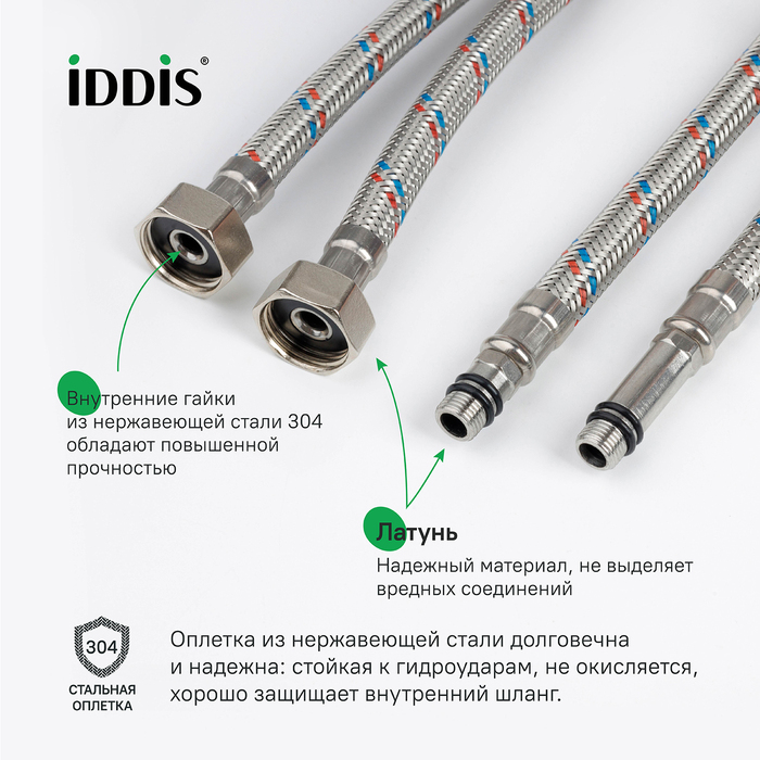 Подводка гибкая для смесителя 500 мм 1/2"xМ10 SS304 2 шт. (нерж. сталь) Iddis (926CBS05ZP)