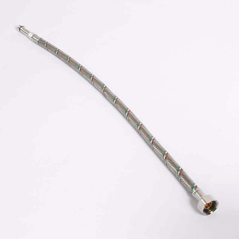 Гибкая подводка для смесителя Uni-Fitt МL10х1 G 1/2"" 50 см оплетка из нержавеющей стали предназначена для подключения сантехнического оборудования к системам горячего и холодного водоснабжения. Внутренний шланг подводки выполнен из нетоксичной резины EPDM в оплетке из нержавеющей стали AISI 304. Гильза также выполняется из нержавеющей стали, фитинги – из латуни. Максимальная рабочая температура достигает +90 оС, минимальный радиус изгиба – 30 мм. Не допускается использовать гибкую подводку в качестве постоянно действующего трубопровода.