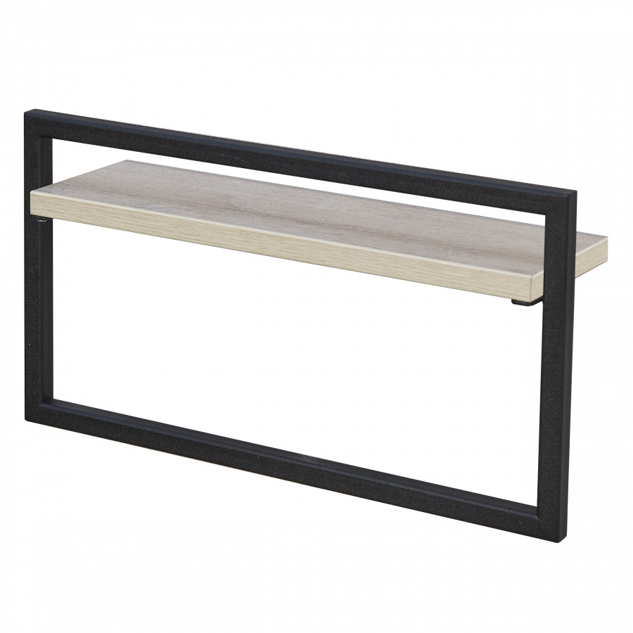 Полотенцедержатель с полочкой, выполненный в дизайне коллекции Лофт Урбан для создания единого интерьера ванной комнаты, позволит разместить декоративные или косметические средства. Функционально состоит из полочки и металлического держателя. Полка выполнена из влагостойкой ламинированной ДСП в цвете дуб орегон, Держатель для полотенец изготовлен из металлического профиля, окрашенного с помощью порошковой окраски, предотвращающей коррозию