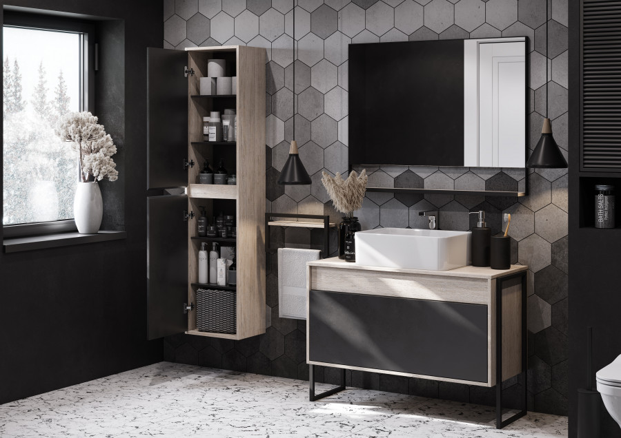 Полка Aquaton Лофт Урбан 400x110x215 черный матовый, дуб орегон (1.A255.4.03L.QX5.0)