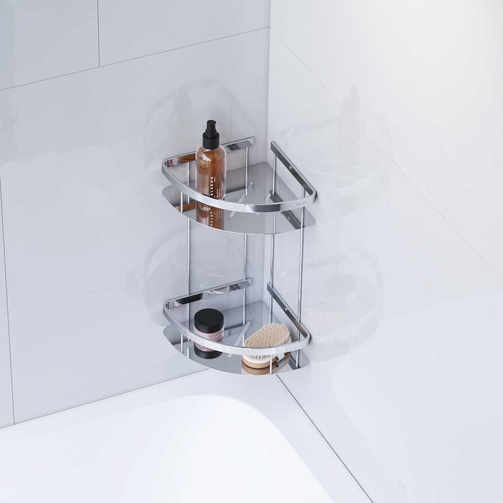 Разумное использование пространства: угловые корзины Sense L не занимают много места при этом позволяя разместить самые необходимые гигиенические и косметические принадлежности под рукой.