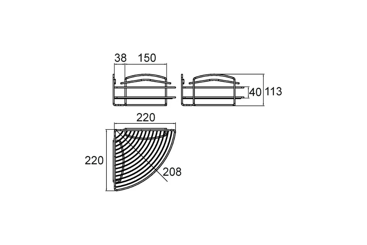 Стальная проволока, d=4.8/4.5/2.4 мм. Пластиковые крепежные крючки в комплекте. Длина одной стороны 215 мм., высота с учетом крепления 115 мм.