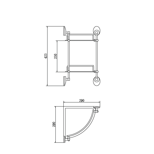 полка настенная угловая двухярусная со стеклянными матовыми поверхностями, H=423 мм (Н между полок=250 мм), L=290 мм