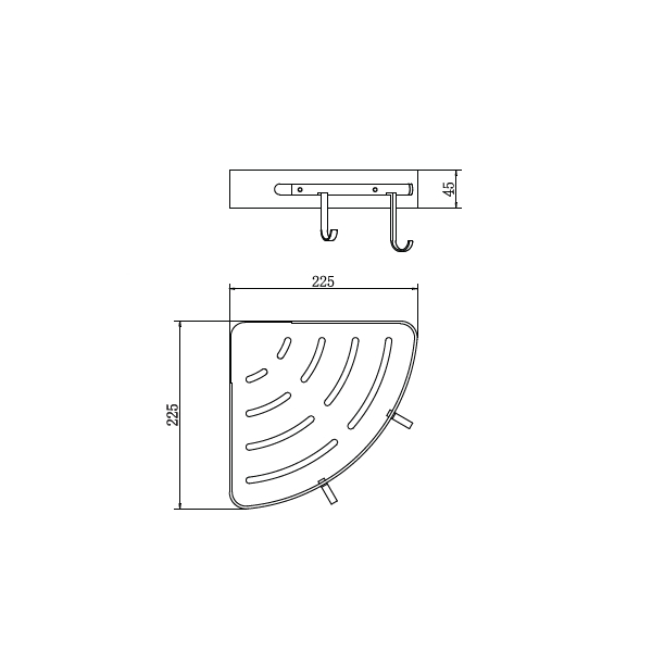 полка настенная угловая с 2 подвижными крючками, H=45 мм, L=225 мм